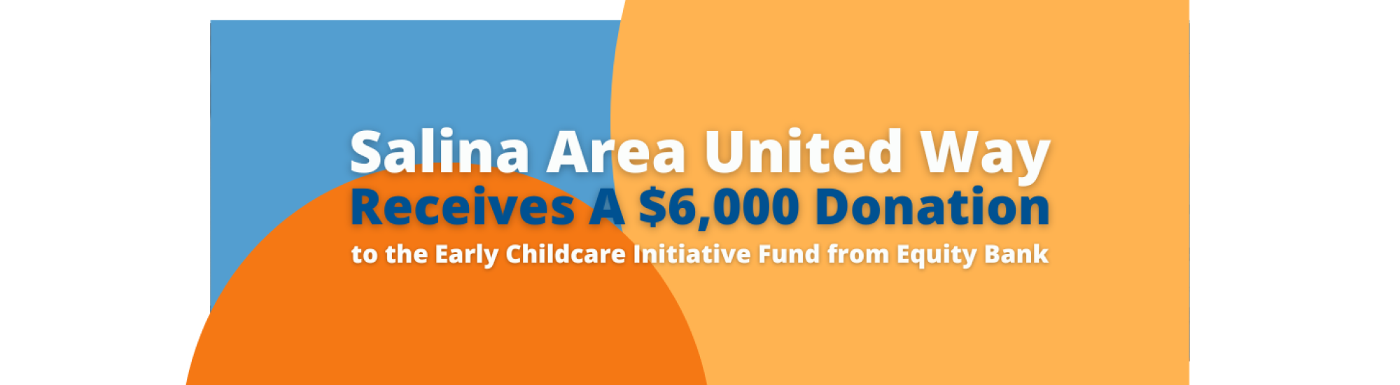 Salina, KS – Salina Area United Way is very pleased to announce that the organization has received a $6,000 donation from Equity Bank to the Early Childcare Initiative Fund. Their donation will help sponsor a local childcare teacher to ensure that they earn a living wage, helping to keep our centers fully staffed, which will in return open more childcare slots.