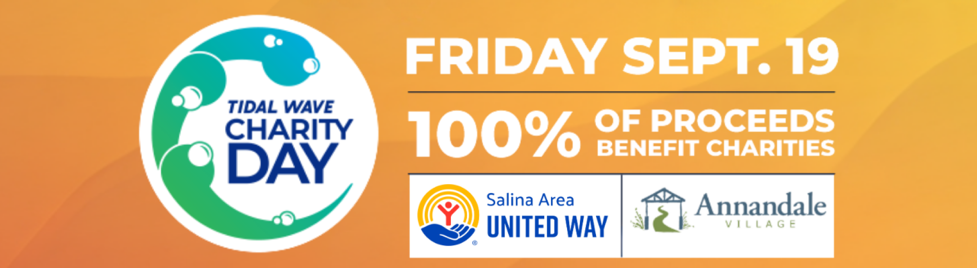 Salina, KS, August 1, 2025 – Tidal Wave Auto Spa is pleased to announce its 17th annual Charity Day event will be held on Friday, September 19, 2025. As part of the company’s long-standing commitment to giving back, Tidal Wave will donate 100% of wash proceeds made during the one-day philanthropic event to local charities and non-profit organizations.