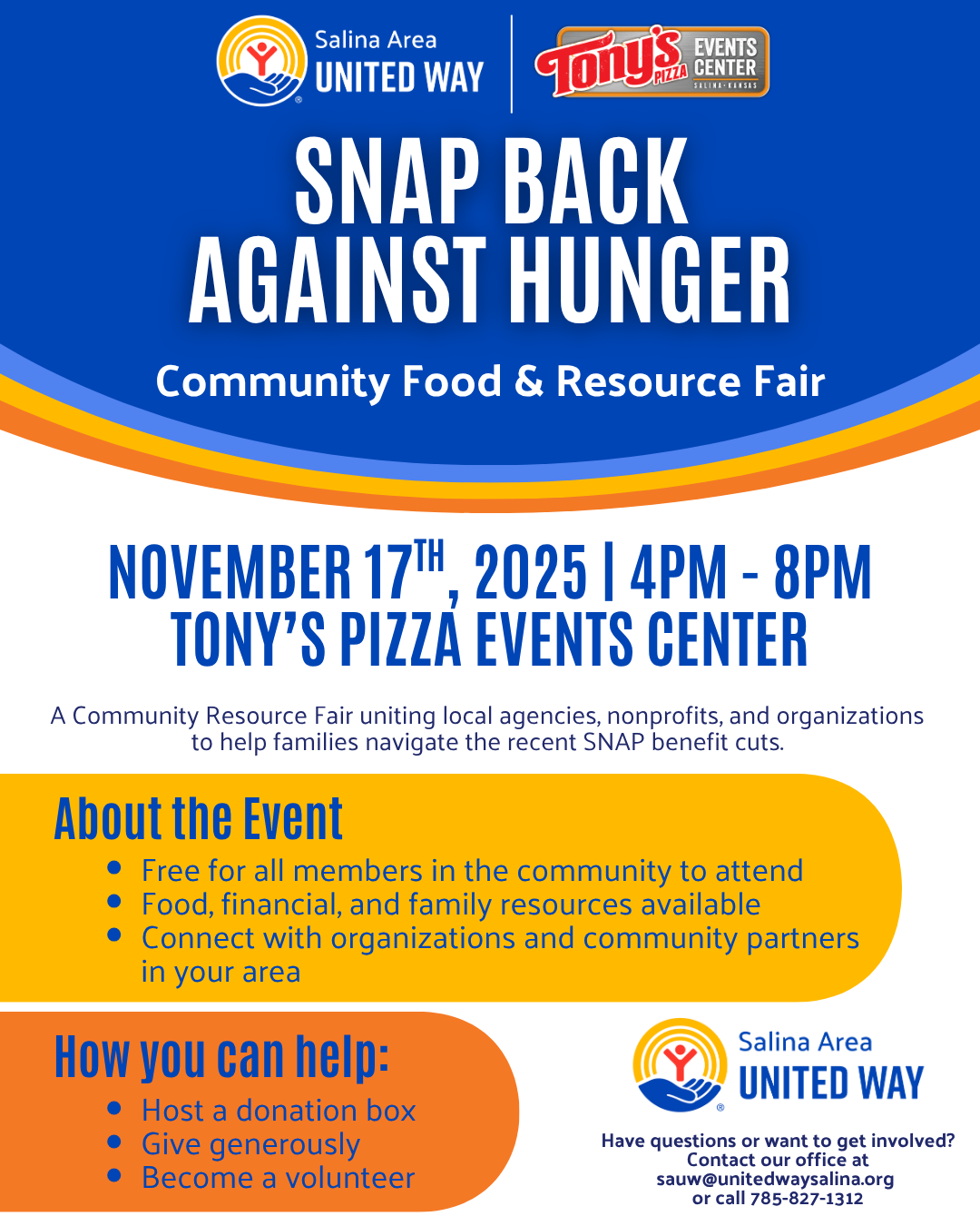 In response, Salina Area United Way and Tony’s Pizza Events Center are launching a powerful initiative: